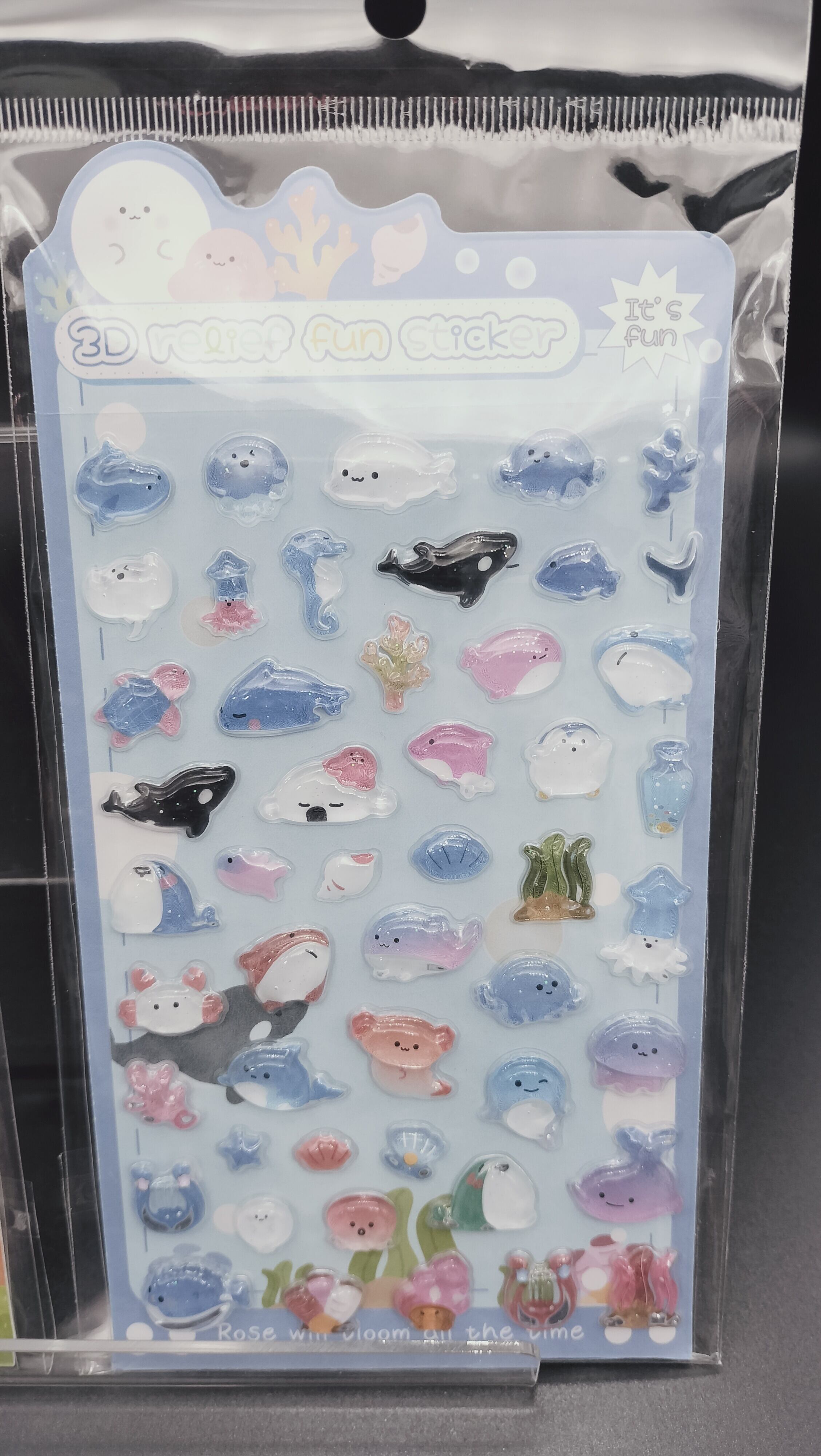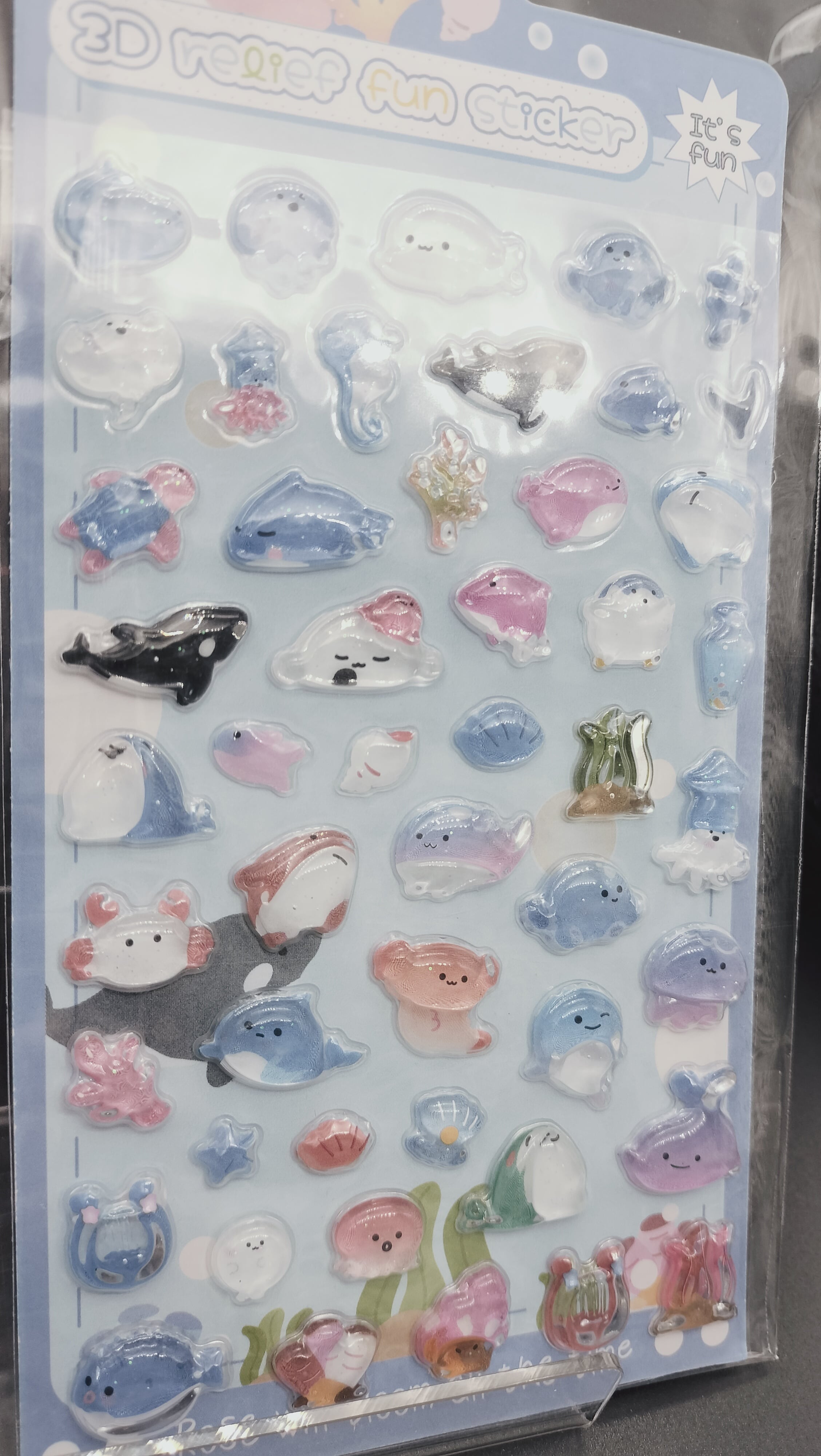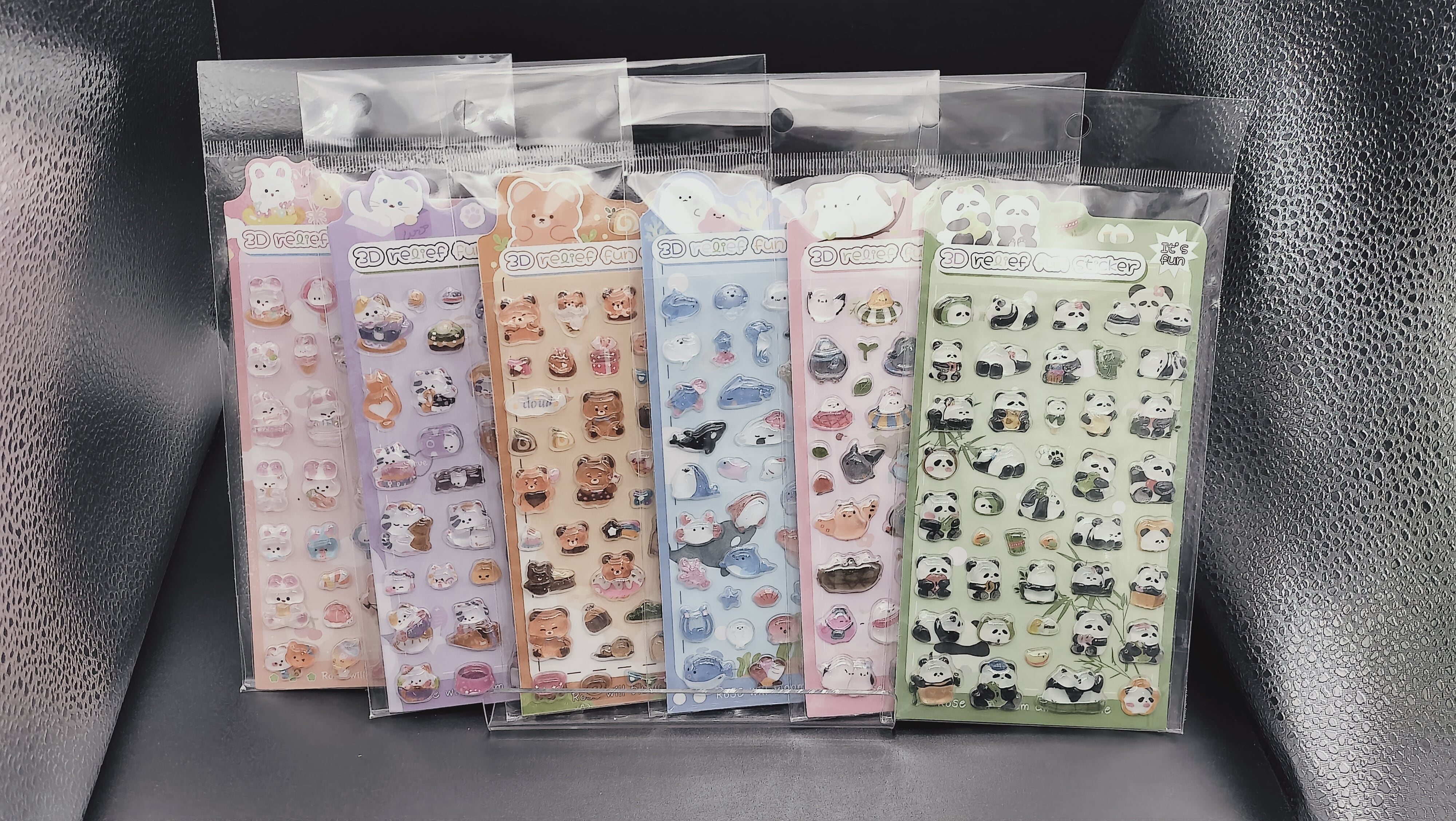 ドロップシール ウサギ/ネコ/クマ/海の生き物/シマエナガ/パンダ eda 3DReliefFunSticker A 6種