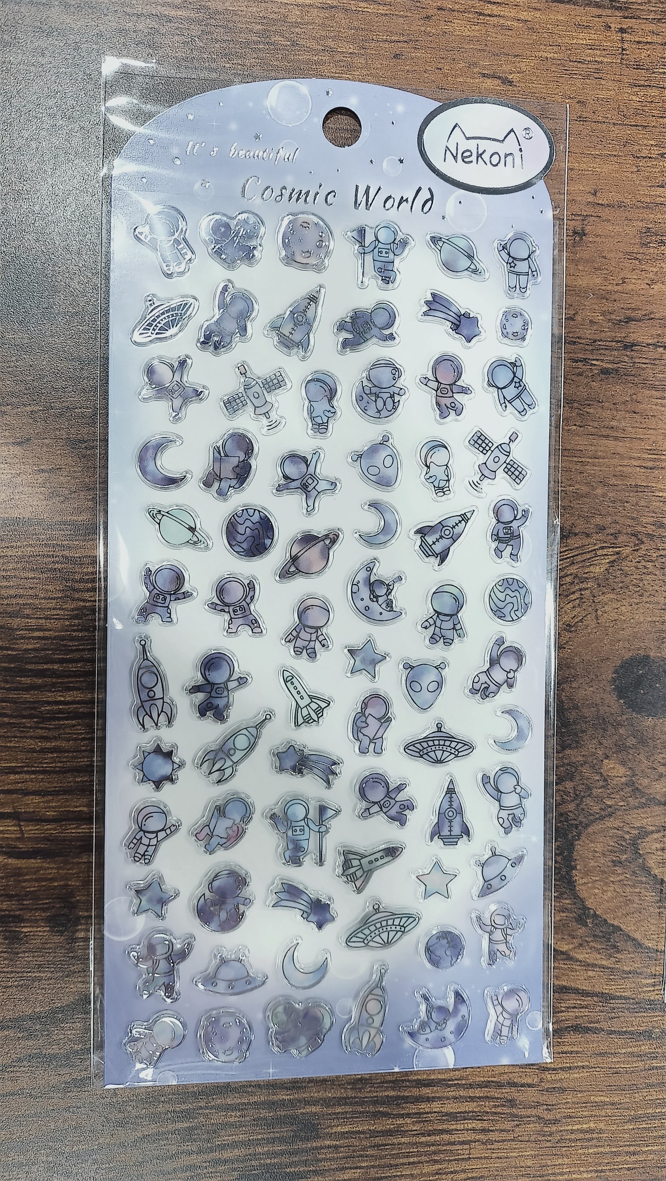 平面硬質シール 線がシルバーにキラキラ 宇宙/海の生き物